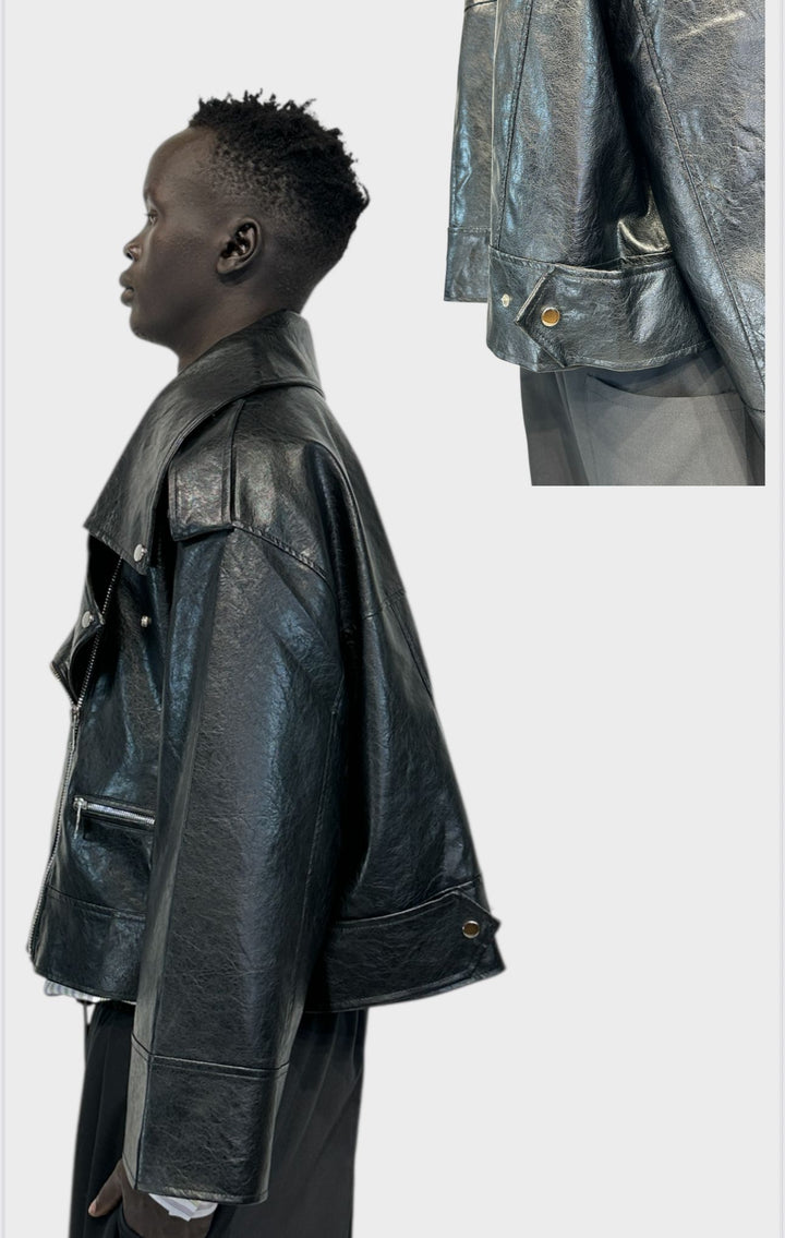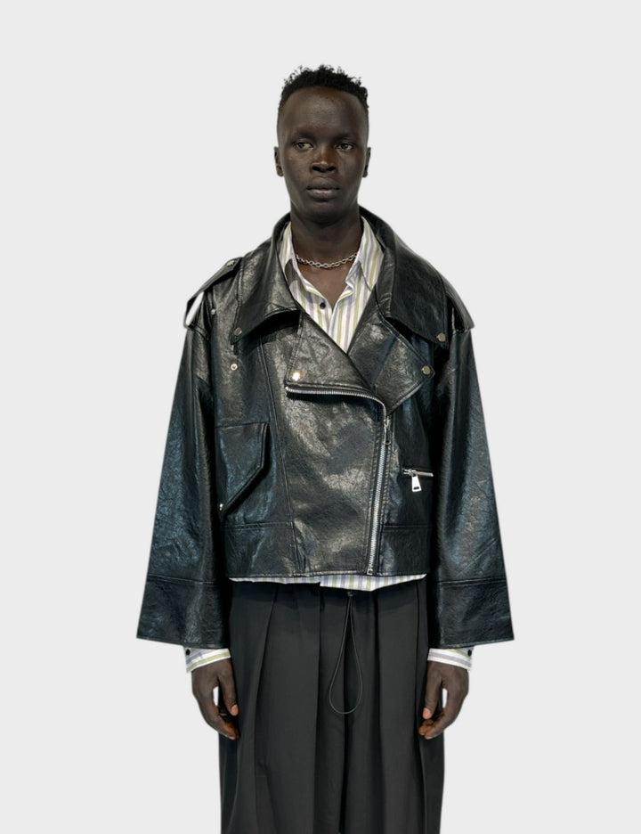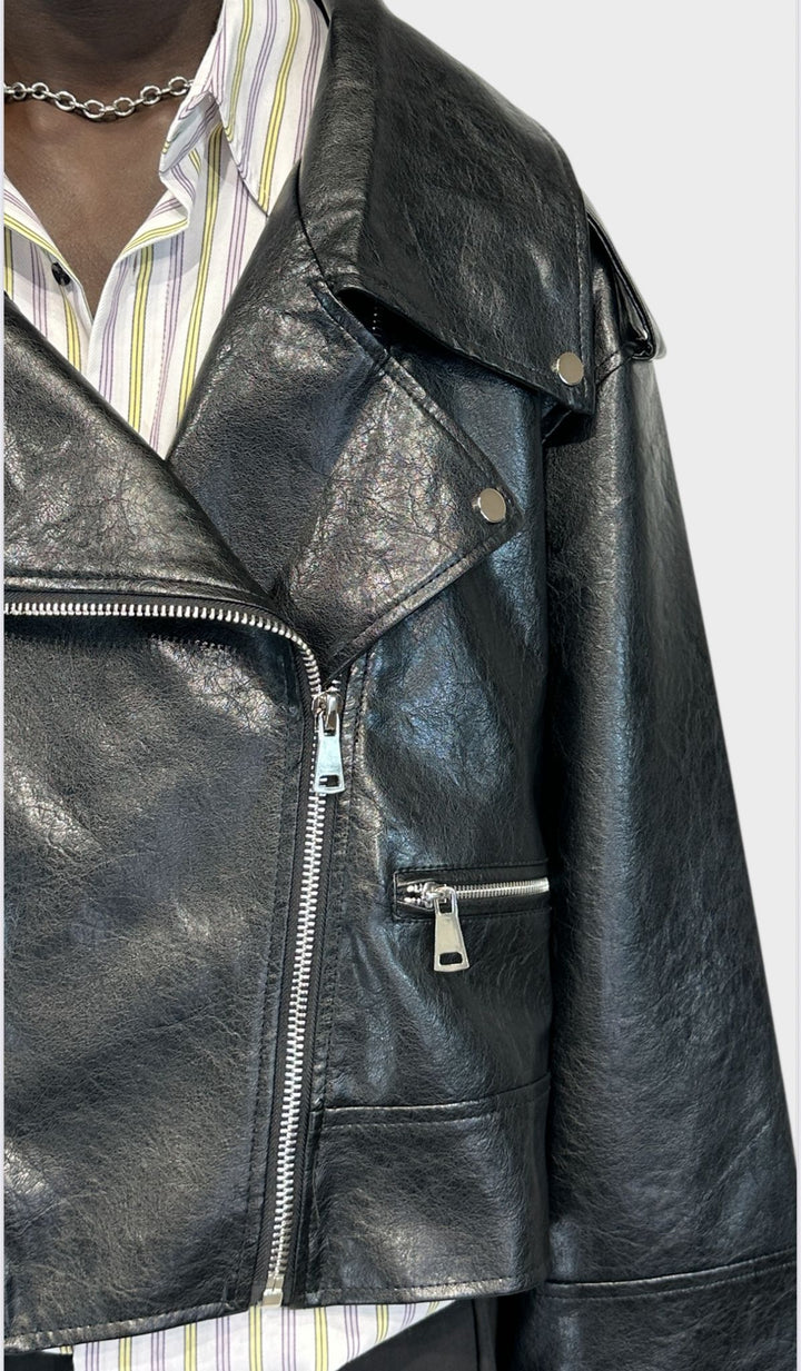 Giacca crop in pelle